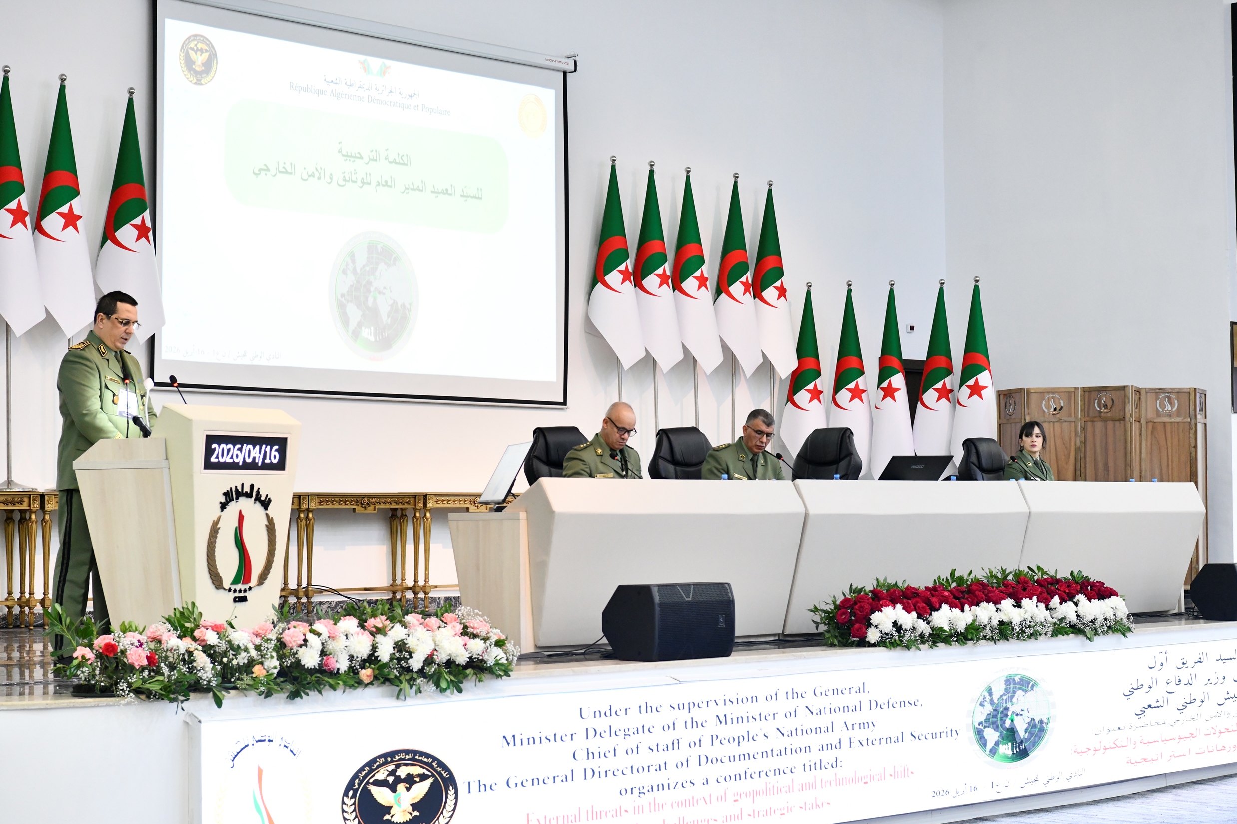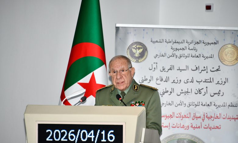 «Monsieur le Général d’Armée Saïd Chanegriha, ministre délégué auprès du ministre de la Défense nationale, Chef d’Etat-major de l’ANP, a présidé, aujourd’hui jeudi 16 avril 2026, au Cercle national de l’Armée, à Béni-Messous, en première Région militaire, l’ouverture des travaux du séminaire, organisé par la Direction générale de la documentation et de la sécurité extérieure sous le thème +Les menaces extérieures à l’ombre des mutations géopolitiques et technologiques : défis sécuritaires et enjeux stratégiques», précise la même source.