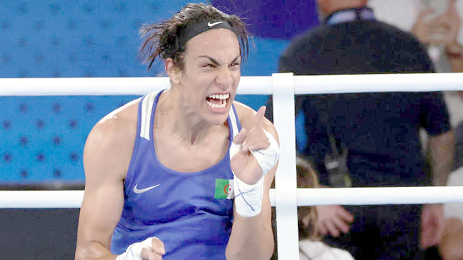 Bien en place sur le ring, avec un jeu de jambes fluide, Khelif a enchainé les coups gagnants en s’appuyant sur son allonge supérieure pour s’adjuger les trois rounds du combat, avant de célébrer sa victoire historique sous les acclamations d’un public tout acquis à sa cause.