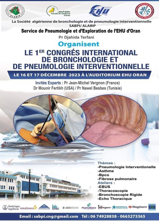 La spécialiste, cheffe de service de pneumologie et d’exploration à l’EHU « 1er novembre 1954 » d’Oran a souligné, en marge du 1er congrès international sur les maladies bronchiques et pneumologie, l’importance de la formation des jeunes médecins sur ces maladies et les nouveautés au niveau mondial en vue de lancer la médecine interventionnelle en pneumologie et bronchologie dans différents hôpitaux du pays.