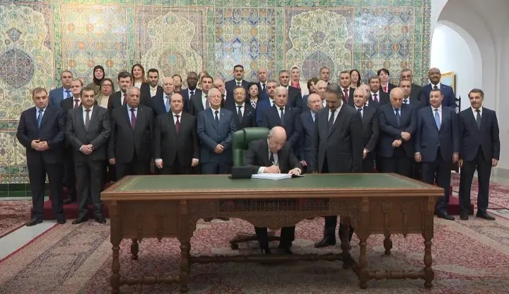 Le président de la République a signé, hier, la loi de Finances de l’année 2026,avant la réunion du Conseil des ministres. . La cérémonie de signature a eu lieu au siège de la Présidence de la République, en présence des membres du gouvernement et de hauts responsables de l’Etat. A l’issue de la cérémonie de signature, une photo-souvenir a été prise avec le président de la République. Il faut savoir que cette loi, qui comprend des dépenses budgétaires record dépassant 17.000 milliards de DA (135 milliards de dollars), s’inscrit dans la politique de développement du président de la République.